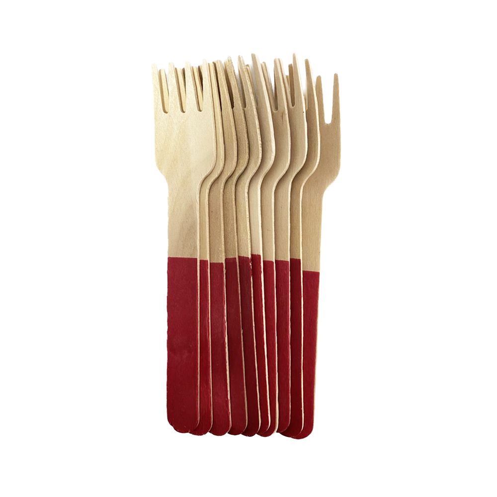 Garfo De Madeira Vermelho 14CM Decorativa Festas 10un
