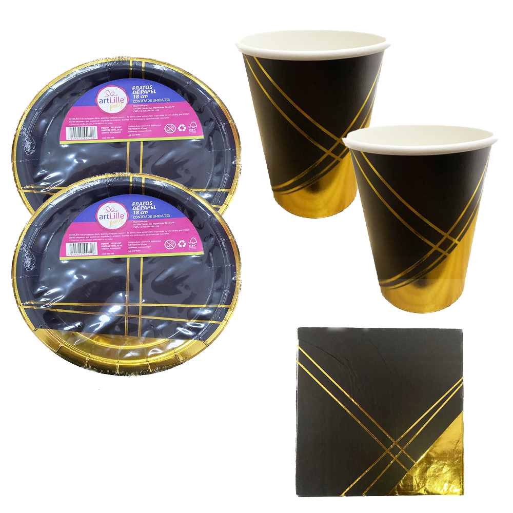 • Pratos te oferecem praticidade, copos de papel são ideais para servir bebidas refrescantes, guardanapos garantem a limpeza e higiene durante a festa