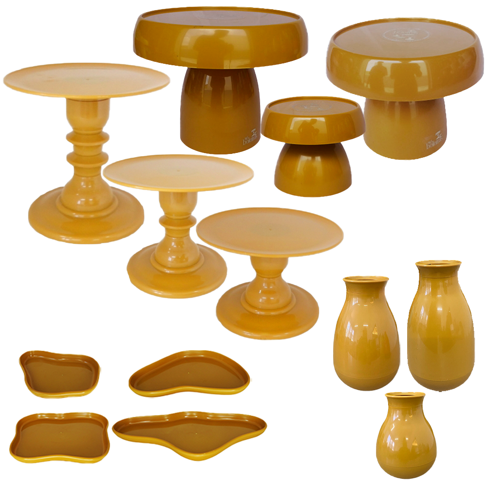 Kit Só Boleiras Decorador Mostarda Para Mesa De Festa