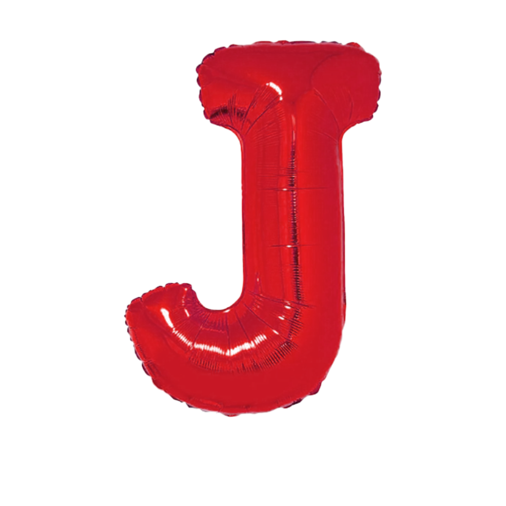 Letra J 16" 41cm Vermelha Metalizado C/Vareta Não Flutua