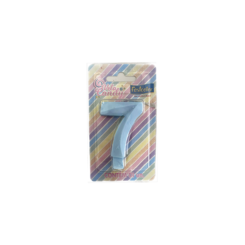 Vela Aniversário Candy Azul 7 Fest Color Decorativa