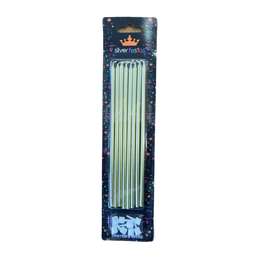 Vela Grande Dourado Metalizada Decoração 18cm 8un Silver Festas