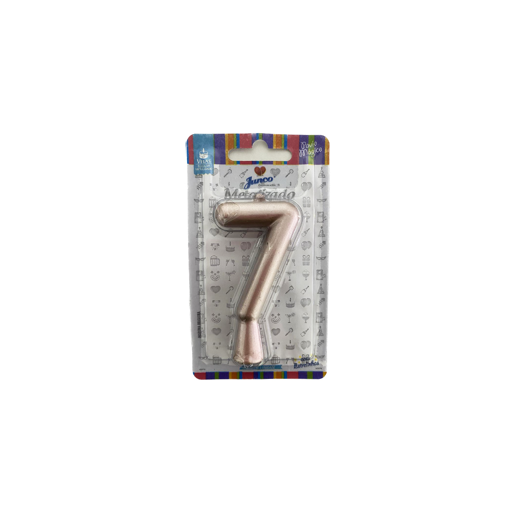Vela Nº 7 Tubular Metalizado Rose Gold 8Cm Decorativa Junco